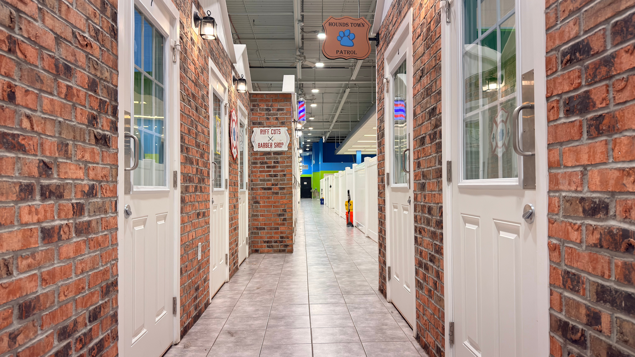 This project brought Hounds Town, a premier doggy daycare franchise, to Westerville, delivering a facility designed for comfort, safety, and play. The buildout included the construction of over 25 individual rooms for dogs, along with bathing stations and designated play areas that provide a secure, engaging environment for pets.