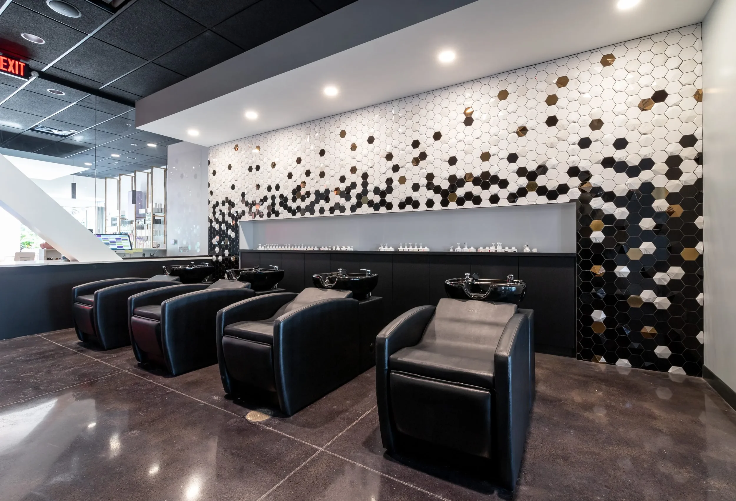 Close collaboration with Moody Nolan Architects allowed for thoughtful detailing, material selections, and finishes that highlight the space’s sophistication. The result is a polished environment that reflects the Color Bar brand, balancing practicality for stylists with comfort and elegance for clients.