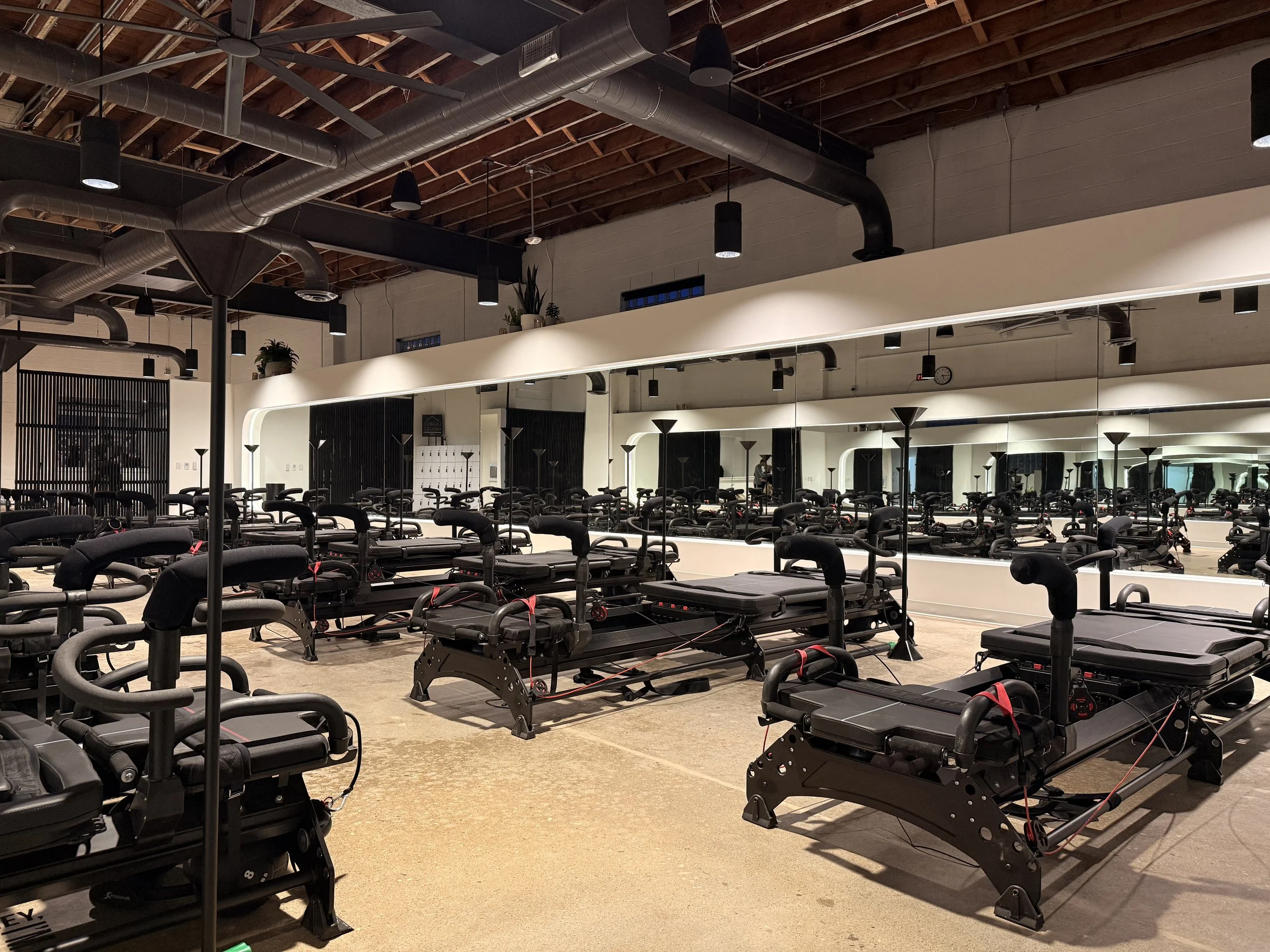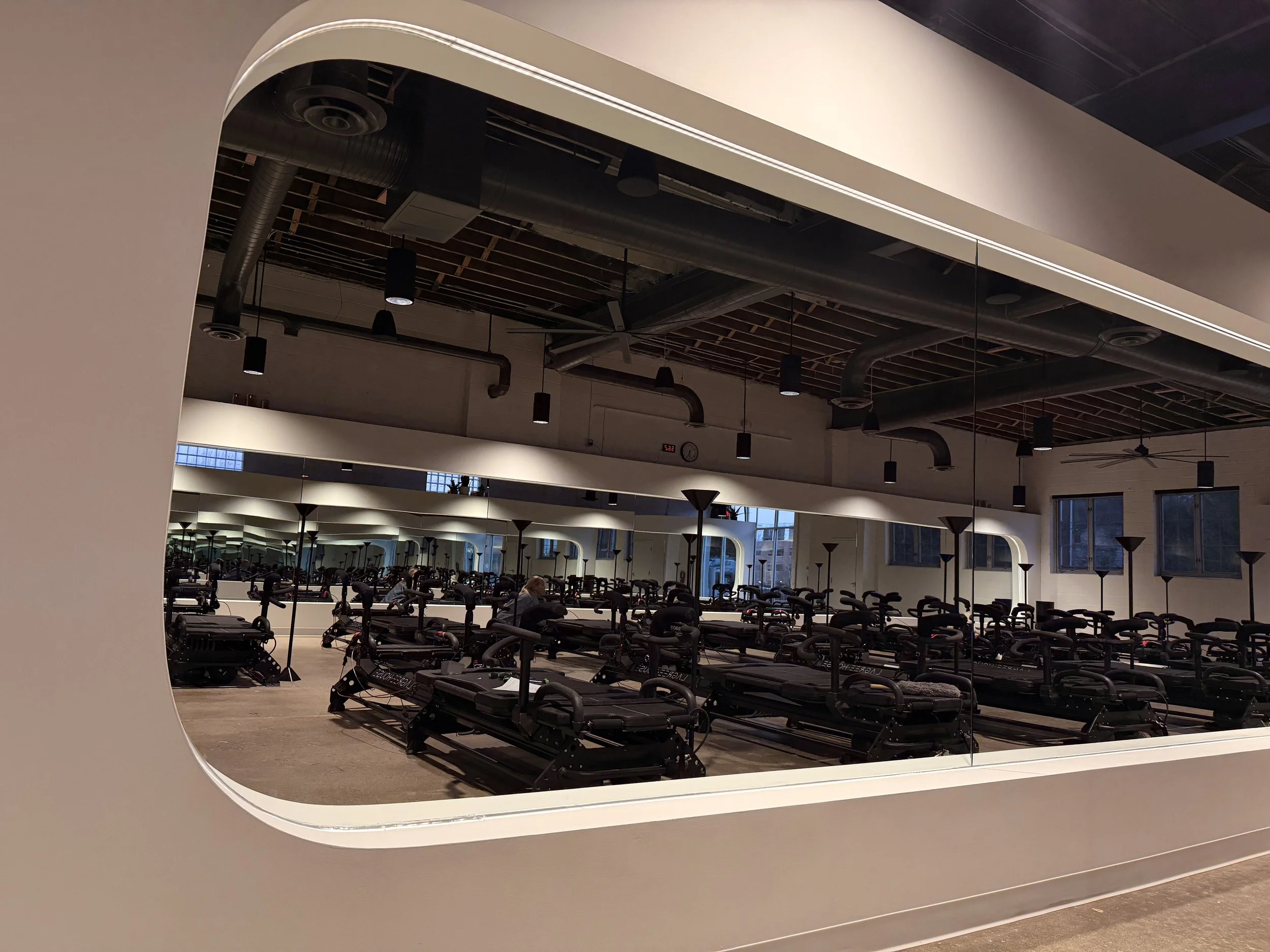 This tenant improvement for Lagree House in Grandview, Ohio transformed an existing office suite into a 3,860-square-foot reformer Pilates studio designed to support both performance and atmosphere. The goal was to convert a standard office layout into a focused, high-functioning fitness environment with a clear, industrial character.