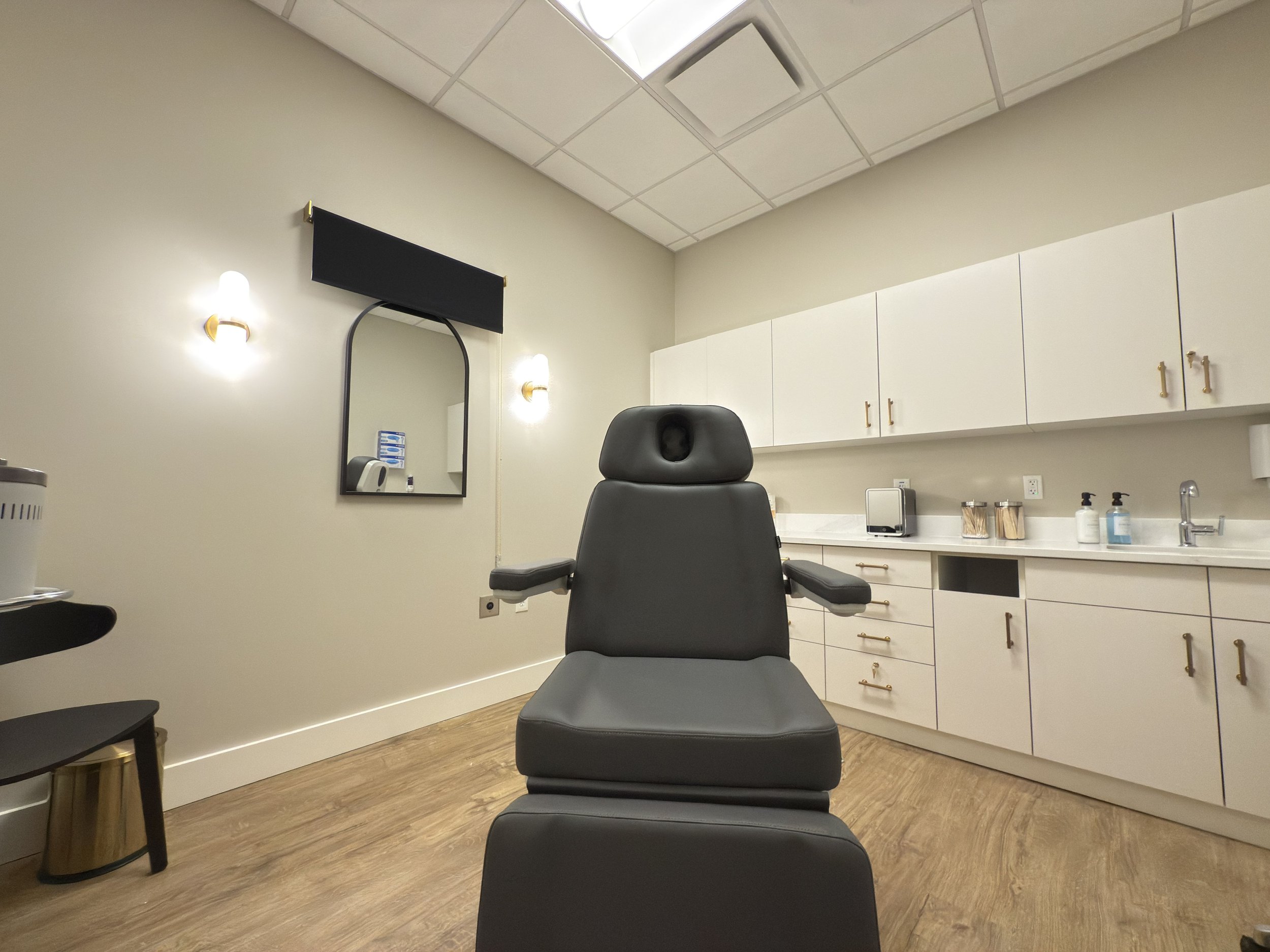 Working in collaboration with Darin Ranker Architects, the project focused on balancing functionality with a high-end aesthetic ensuring both staff efficiency and a premium client experience. The result is a polished, modern medspa environment delivered on schedule and within budget.