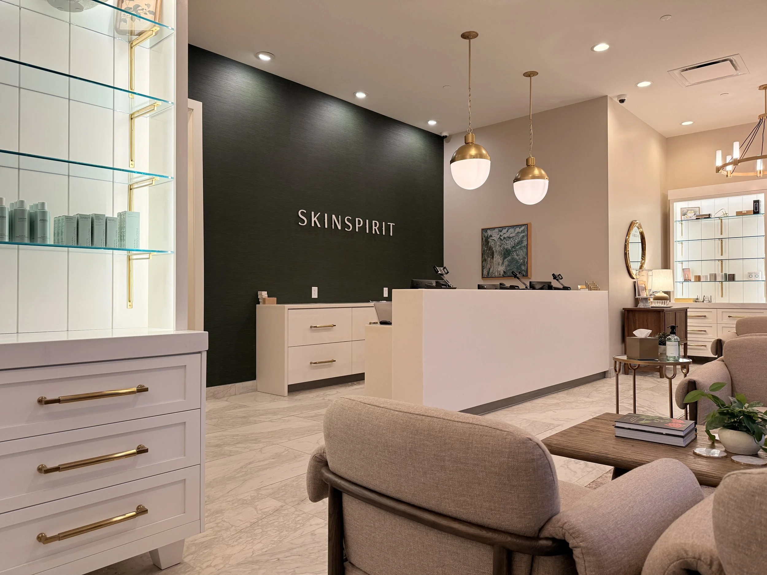 Description: This tenant improvement for SkinSpirit at The Shoppes at River Ridge reimagined an existing medspa to better align with a modern, client-focused experience. The goal was to move away from a cold, clinical feel and create an environment that feels warm, inviting, and designed for comfort and privacy.